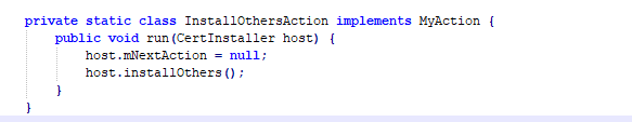 在这里可以看到InstallOthersAction中的run方法实际就是调用的CertInstaller.installOther函数;